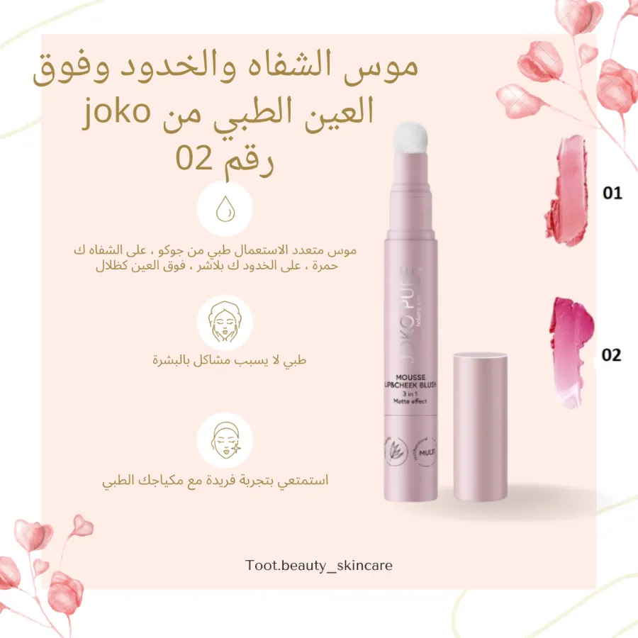 _ أحمر خدود كريمي متعدد الوظائف وذو تصبغ قوي يمكن استخدامه على العيون والشفتين والخدود. يوفر لمسة نهائية غير لامعة على الشفاه وأحمر خدود رقيق على الخدود. يمتزج الملمس الكريمي الناعم للموس بشكل مثالي مع البشرة، مما يوفر لونًا مكثفًا يدوم لفترة طويلة بشكل استثنائي. تضمن الإسفنجة سهولة الاستخدام ولمسةً نهائية ناعمة ومتساوية. مثالي للاستخدام اليومي. منتج واحد، وإمكانيات عديدة.